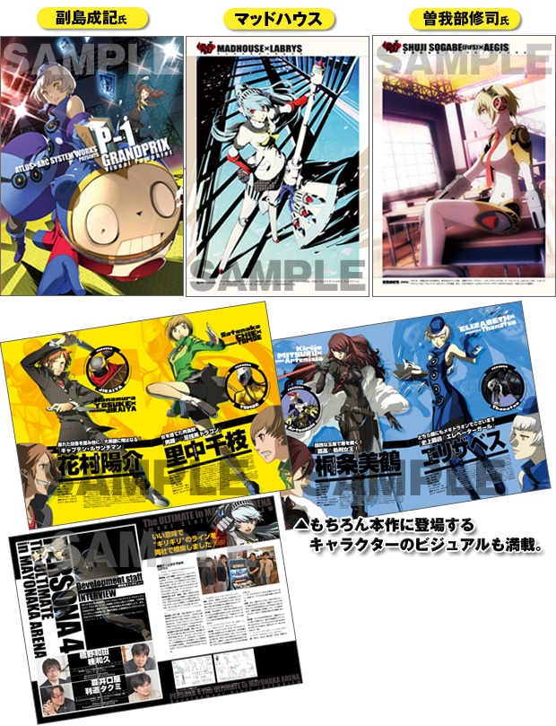 『ペルソナ4 ジ・アルティメット イン マヨナカアリーナ』の魅力を集約したフルカラー24ページ・B4サイズのパンフレット。表紙はキャラクターデザイナー副島成記氏による描き下ろし!!(週刊ファミ通連動企画)さらに、『ペルソナ4 ザ・ゴールデン』に続き本作のオープニングアニメを担当する「マッドハウス」による描き下ろしイラスト、『ペルソナ4』公式コミックを連載中の曽我部修司氏(FiFS)による描き下ろしイラストも収録が決定!その他、開発陣へのインタビュー、各種キャラクタービジュアル等を収録したパンフレットです。。