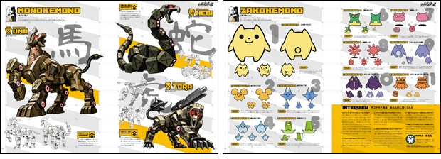 モノケモノの大迫力のイラストを、数々のデザイン画とともに掲載。ほかの登場キャラクターたちとは一線を画す、かわいらしいザコケモノのカラフルなデザイン画も!