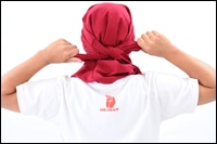 | 4:頭の後ろで袖を結んで… | 5:しっかり結びます | 6:後ろからみるとこんな風に | ||