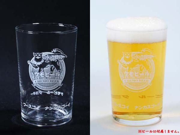 作中に登場するビールブランド“ケモビール”エンブレム入りのナンカスゴイグラスです。