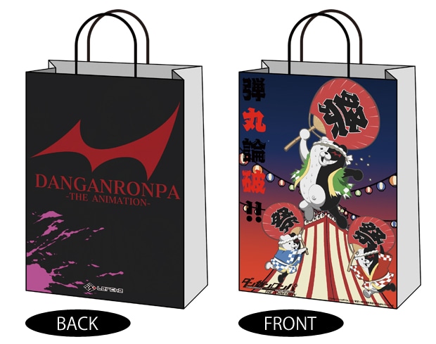 アミサキリョウコ氏により、この紙袋のために描き下ろされたイラストをデザインした紙袋です。祭囃子に踊るモノクマを見ると、第4話の衝撃的なエンディングが頭をよぎる!?