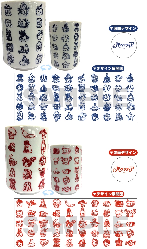 「パペッティアの主人公クウタロウと作中に登場するヘッドを配した湯のみ」および「ピカリナとヘッドを配した湯のみ」の2個セット。