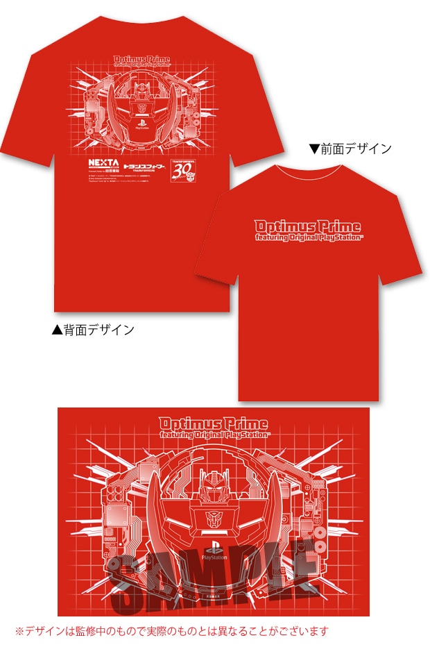 『Optimus Prime featuring Original PlayStation(TM)』のデザインを担当した、「出雲重機」ことメカニカルキャラクターデザイナーの大久保淳二氏による描き下ろしデザインのTシャツです。