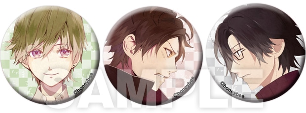 「Re:BIRTHDAY SONG~恋を唄う死神~」のキャラクターデザインを手掛けるさとい氏による描き下ろし「Re:BIRTHDAY SONG~恋を唄う死神~ Star Light Festival」口絵イラストを使用した「アメ」、「シュン」、「ナミ」の缶バッジ3種セット。
