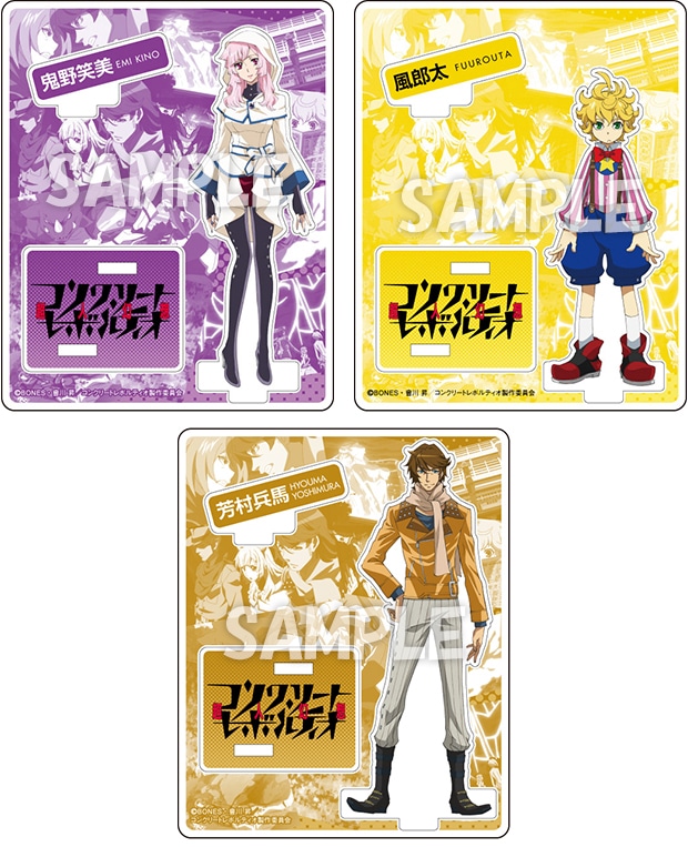 「鬼野笑美」、「風郎太」、「芳村兵馬」それぞれを、かざって楽しむことが出来るアクリルスタンドポップコレクションです。
