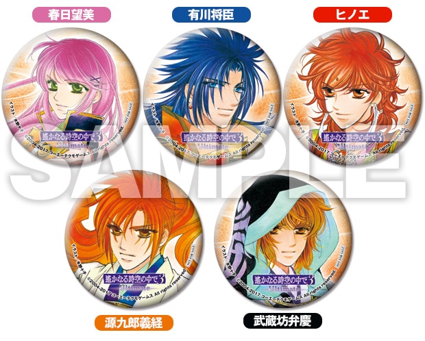 「主人公」・「将臣」・「ヒノエ」・「義経」・「弁慶」の5人の立ち絵イラストを使用した缶バッジセット。