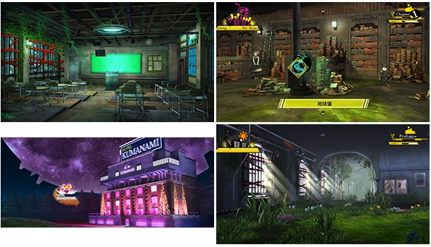 壁や天井を緑のツタが這う教室や、おおよそ学園の施設とは思えないホテルなど、希望ヶ峰学園とはまた一味違った雰囲気を持つこの学園で、新たなキャラクター達によるコロシアイ学園生活が幕を開ける…