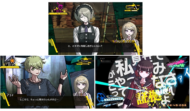 他のメンバーの矛盾した言動を論破し、真実を追求するのがシリーズにおける学級裁判の基本でしたが、本作では「嘘」モードを新たに実装。あえて嘘をつき議論を有利に進めるという、これまでにないゲームプレイが楽しめます。他にも参加者全員が2チームに分かれて意見をぶつけ合うシリーズ初のチーム戦「論議スクラム」など、学級裁判に多数の新システムが追加されています。