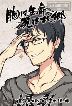 高木プロデューサーの似顔絵イラストにコメントが書かれたポストカード。