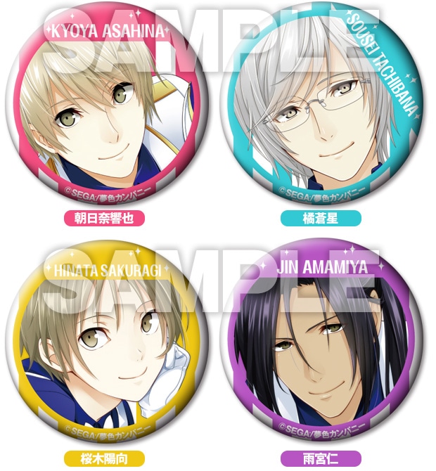 ●描き下ろしカバーイラストより「朝日奈響也」「橘蒼星」「桜木陽向」「雨宮仁」の缶バッジ(57mm)計4個セット