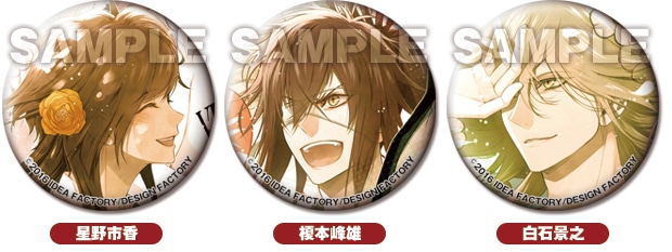 ビジュアルファンブックの描き下ろしカバーイラストを使用した「星野市香」、「榎本峰雄」、「白石景之」の缶バッジ3個セット。
