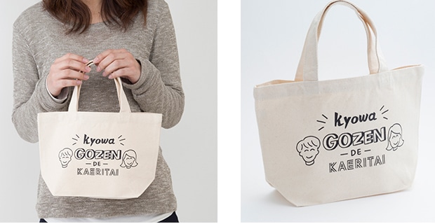 「今日は早めに帰りたい」に書籍発売記念限定のトートバッグ(大)、ランチバッグをセットしたエビテン限定商品。