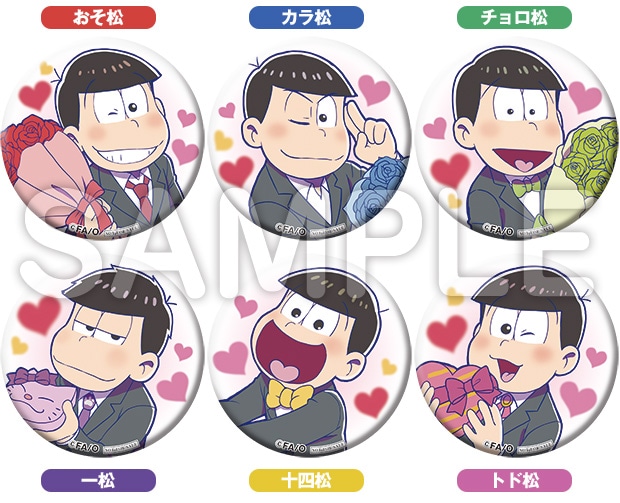 ディ・テクノ社『おそ松さん』アプリゲーム「松野家扶養家族選抜会場」イラストを使用した缶バッジ6種の内、1種をプレゼント!