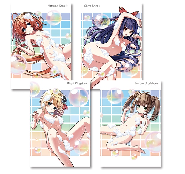 ナツメ達4人が、なんとおふろポスターに!ギリギリの部分が泡で隠れた、ドキドキのイラストだ!!