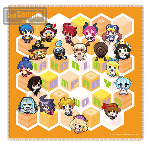 初回封入特典の「キャラクターお絵かきパーツ」で表現された日本一ソフトウェアキャラクターがデザインされたマイクロファイバークロス。