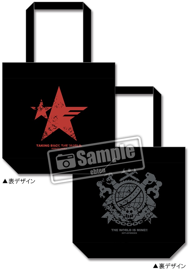 ソニック達「レジスタンス軍」のエンブレムと、Dr.エッグマン率いる、シリーズ歴代のボスたちをメンバーとして連ねる「エッグマン軍」のエンブレムが両面にデザインされたトートバッグです