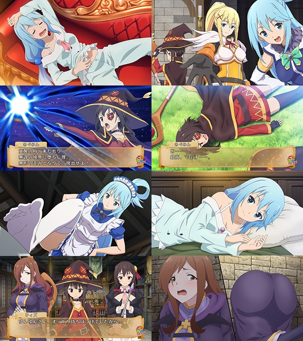 本作では、主人公カズマが持つスキル” 窃盗(スティール)”が撒き起こす騒動と、アクアへの失態により借金を背負ったカズマ達が返済の為に、様々な手を尽くすオリジナルストーリーが展開します。
