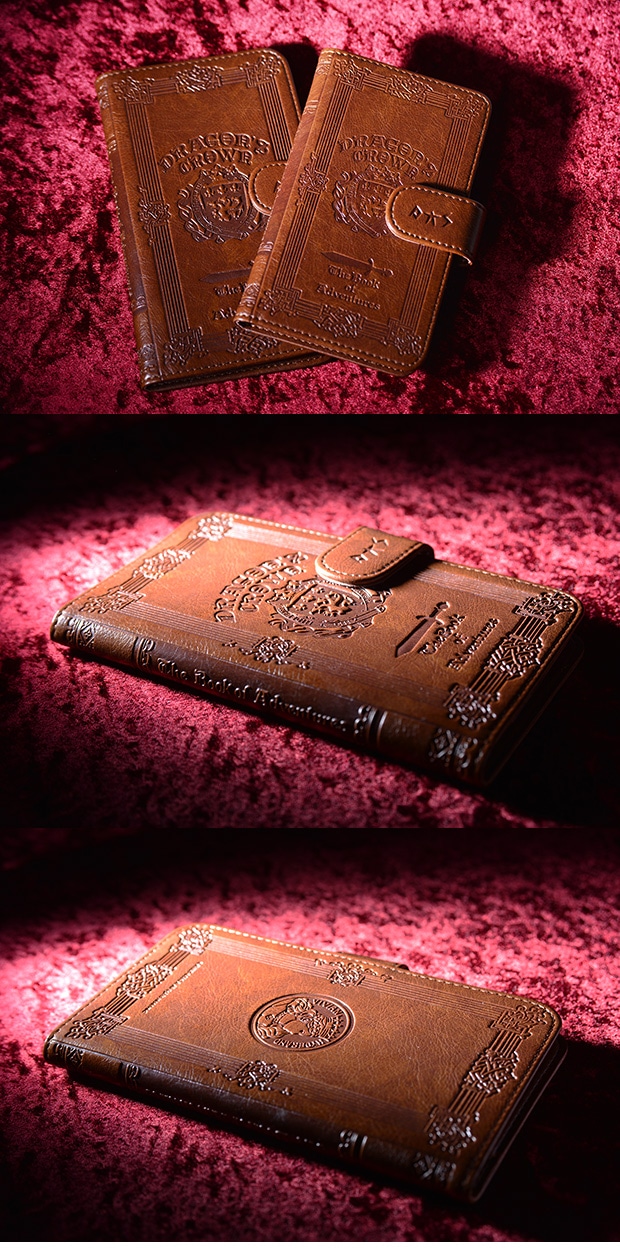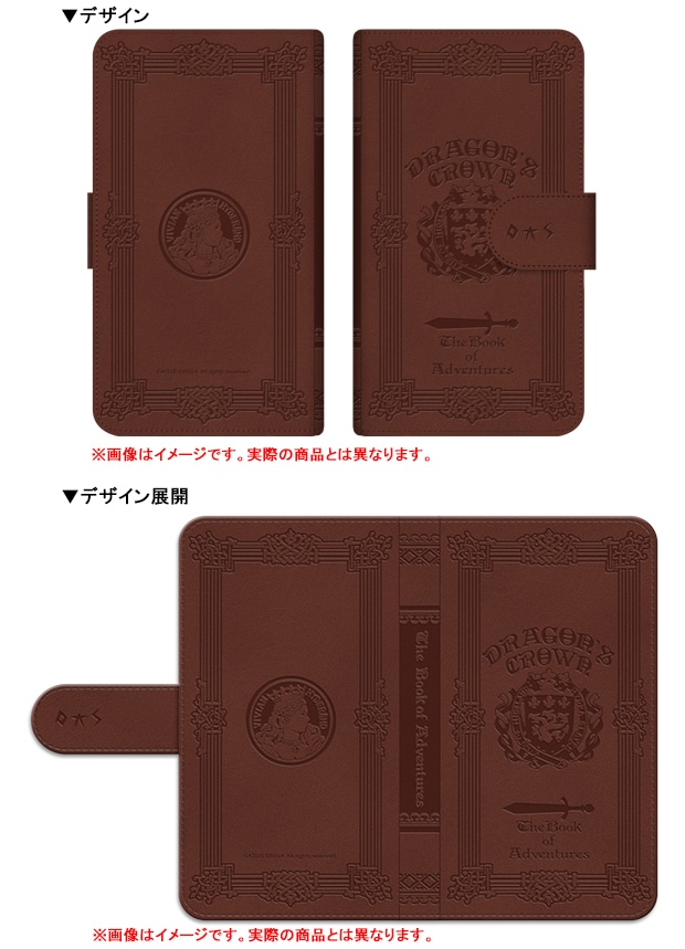 ハイドランド王国の紋章や、本作の意匠を用いてモチーフデザインした合皮製手帳型スマホケースです。レザー調の落ち着いた素材感のケース生地に、凸凹模様を彫った押し型フレームで強圧するエンボス加工で本作の魅力を再現します。