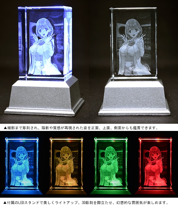 本作ヒロインである「りょーたす」こと”成沢稜歌”をクリスタルキューブ内に3D立体レーザー彫刻で再現。