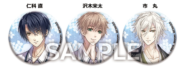 「仁科 直」「沢木宋太」「市 丸」のイラストを使用した缶バッジ3種セット