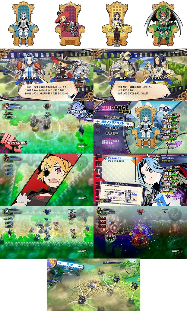 「褒める」「叱る」という2種類の指導を適切に行うことで、姫たちの成長を促したり、一時的なステータス上昇効果を与えることで、バトルをより有利に進めることができる。