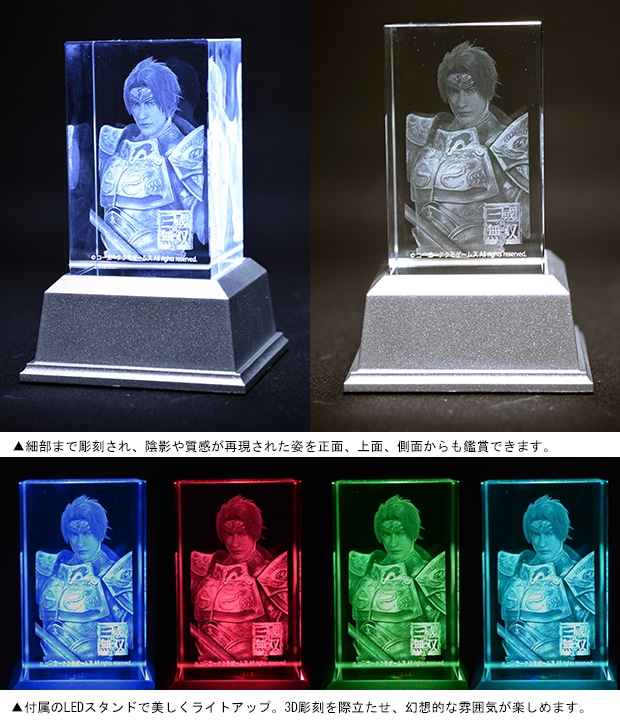 本作のキャラクターである”趙雲”をクリスタルキューブ内に3D立体レーザー彫刻で再現。