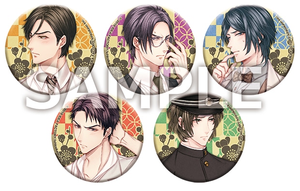 「弥島幸介」「弥島裕介」「弥島惣介」「弥島恭介」「弥島俊介」のイラストを使用した缶バッジ5種セット。