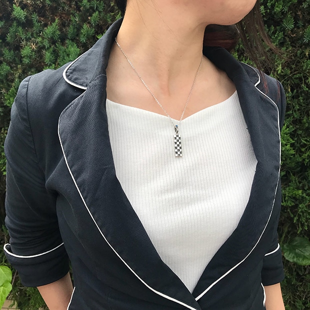 すっきりとしたシルエットが美しい、ダンスフロアをイメージした市松模様のプレートペンダントです。