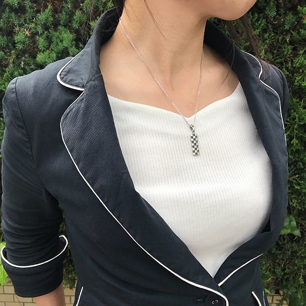 すっきりとしたシルエットが美しい、ダンスフロアをイメージした市松模様のプレートペンダントです。