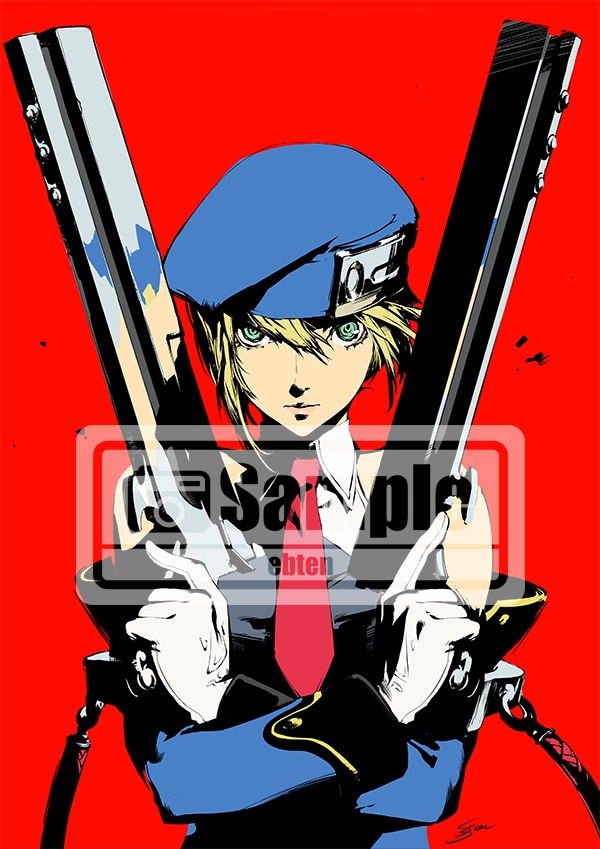 今作のクロスオーバー作品の一つである『ペルソナ4』のキャラクターデザインの副島成記氏が過去に描かれた「ノエル=ヴァーミリオン」のイラストを使用したB2サイズのタペストリー