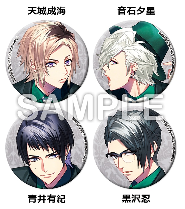『DYNAMIC CHORD - Dear message - from [reve parfait] & apple-polisher』表紙イラストを使用。「天城成海」「音石夕星」「青井有紀」「黒沢忍」のイラストを使用した缶バッジ4種からお好きなデザインを1つお選びください。