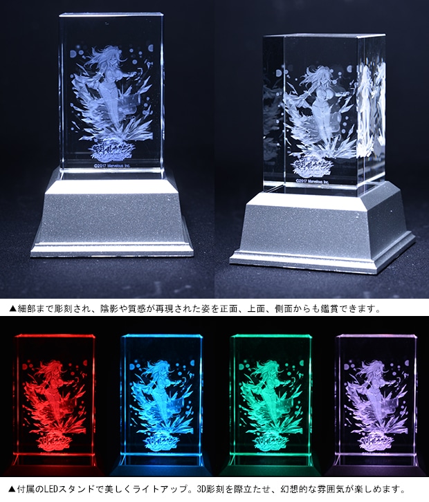 雪泉が秘めた力に覚醒した姿の「氷王の雪泉」のイラストをクリスタルキューブ内に3D立体レーザー彫刻された商品。 光の加減や角度によってさまざまな見え方をしますので、飽きのこないインテリアアイテムとして楽しめます。