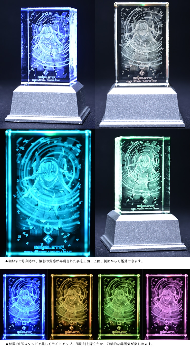 『超次元ゲイム ネプテューヌVII』で、ブラックハートが進化した姿、ネクストブラックをクリスタルキューブ内に3D立体レーザー彫刻で再現!付属のLEDスタンドに設置することにより、光の加減や角度によってさまざまな見え方をしますので、煌びやかで飽きのこないインテリアアイテムとして楽しめます。