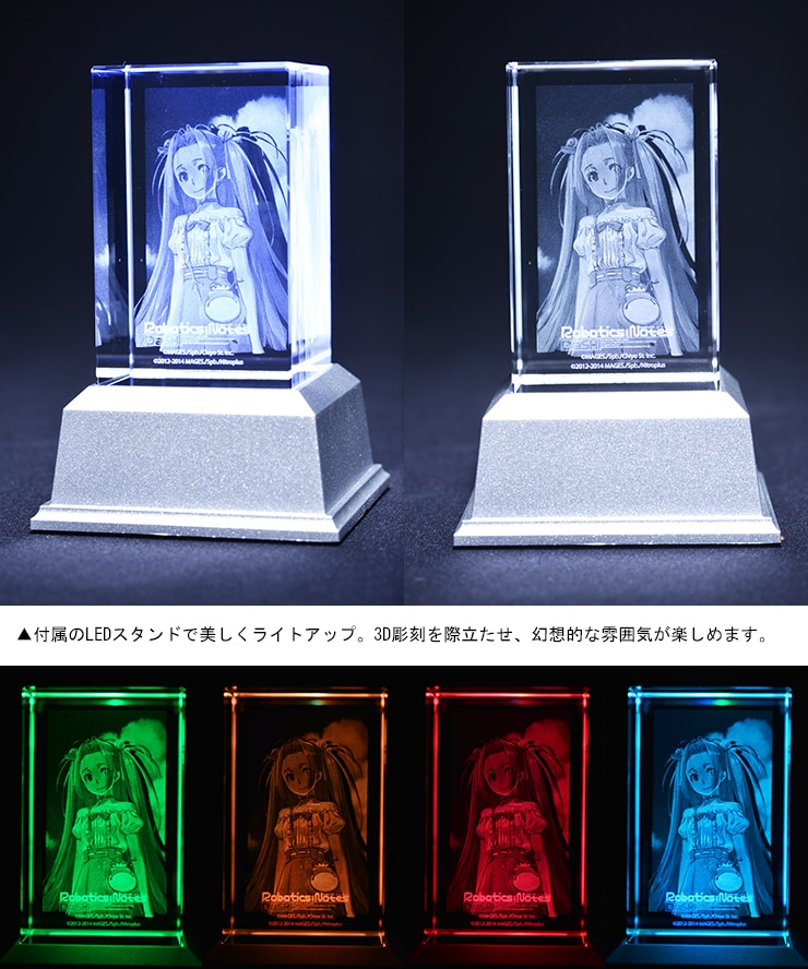 “愛理”のイラストをクリスタルキューブ内に3D立体レーザー彫刻された商品。