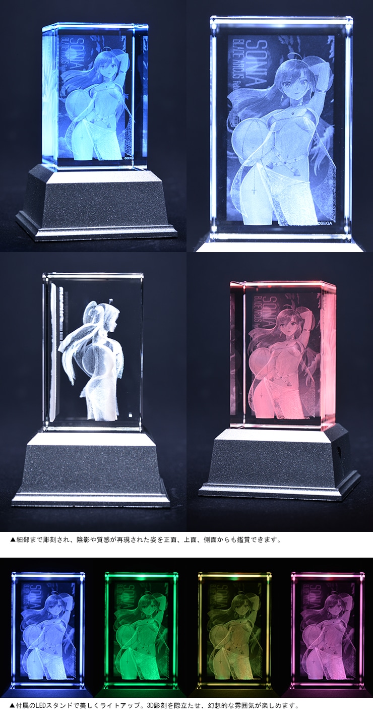Tony氏によって描かれた水着姿のソニアをクリスタルキューブ内に3D立体レーザー彫刻で再現した3Dクリスタルです。付属のLEDスタンドに設置することにより、光の加減や角度によってさまざまな見え方をしますので、煌びやかで飽きのこないインテリアアイテムとして楽しめます。