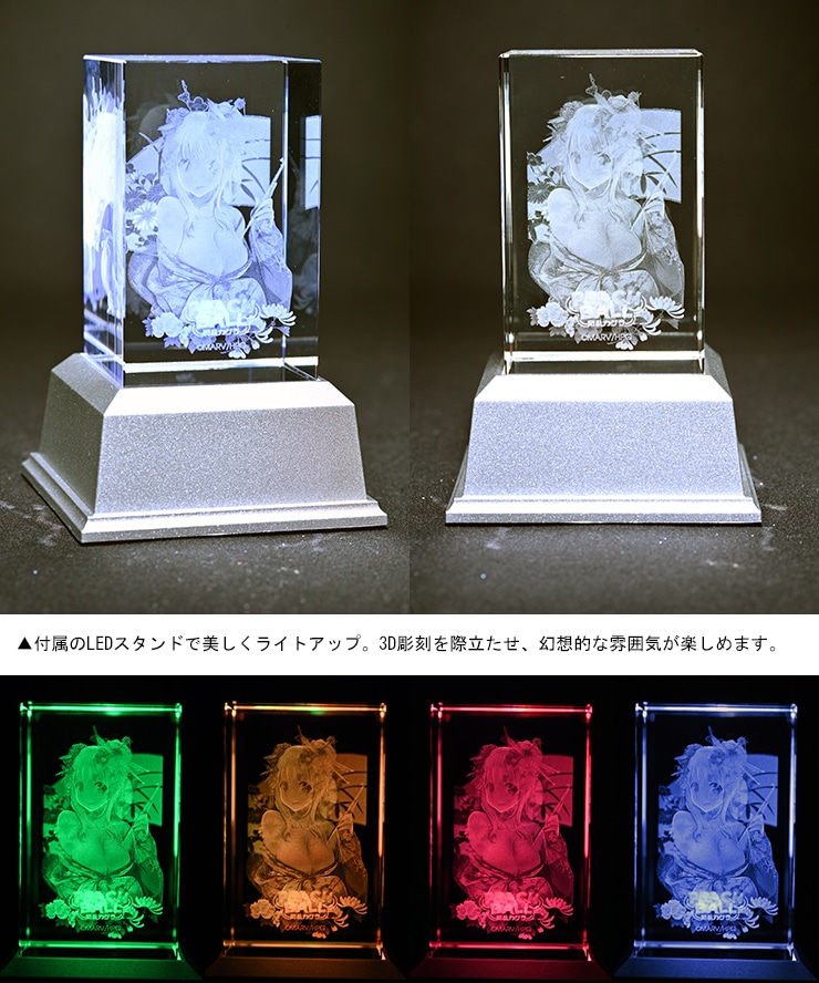 詠のイラストをクリスタルキューブ内に3D立体レーザー彫刻された商品。
