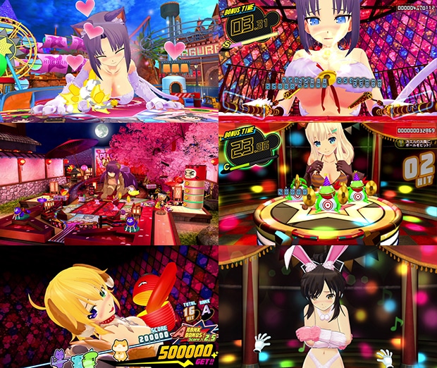 揺れる・弾む・ボールの感触がHD振動でリアルに伝わる他、ポイントを溜めると解禁されるボーナスステージでは『閃乱カグラ』ならでは新演出「セクシーチャレンジ」で少女たちの魅力を堪能できる!