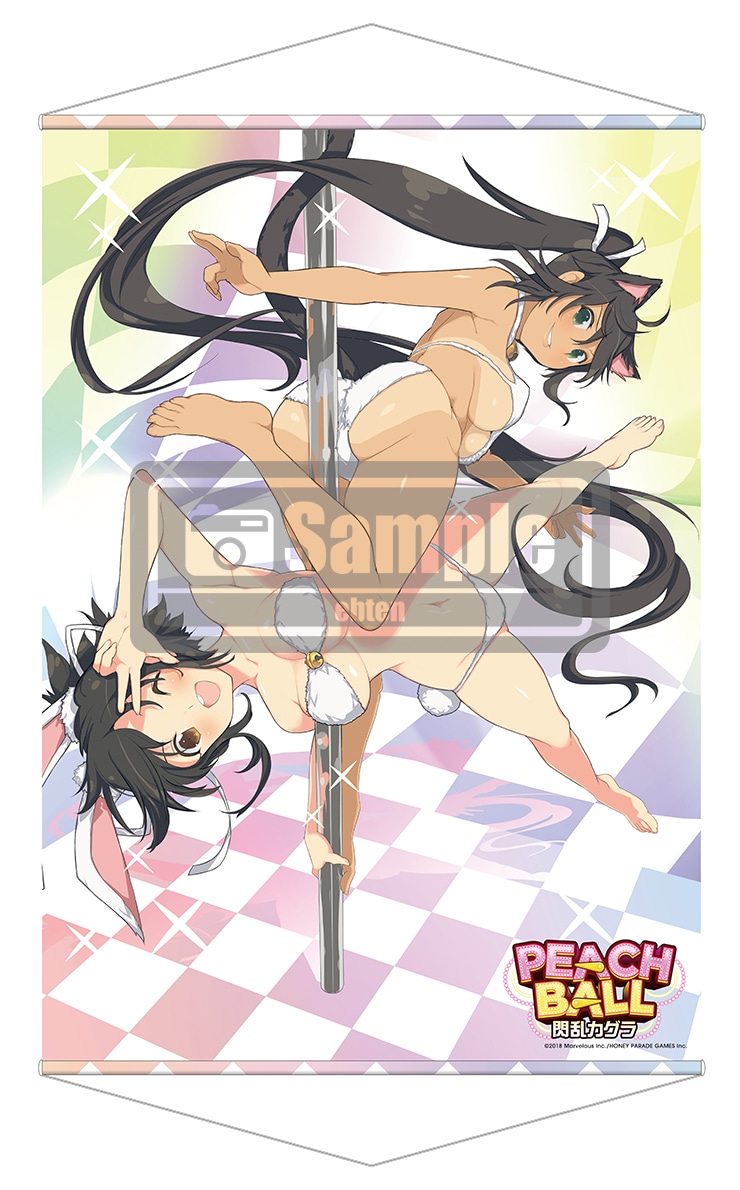 『閃乱カグラ』シリーズのキャラクターデザインを手がける八重樫南氏描き下ろしの「飛鳥&焔」のイラストをタペストリー化。
