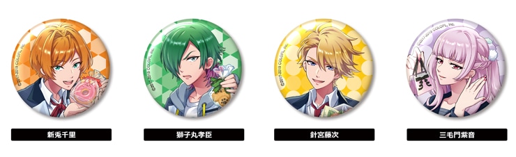 表紙を飾る描き下ろしイラストを使用した【新兎千里&獅子丸孝臣&針宮藤次&三毛門紫音】の缶ストラップが付属♪