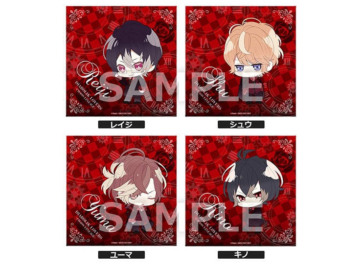 スカーレット家「レイジ」「シュウ」「ユーマ」「キノ」のちびきゃらイラストを使用したマイクロファイバークロス4種セット。