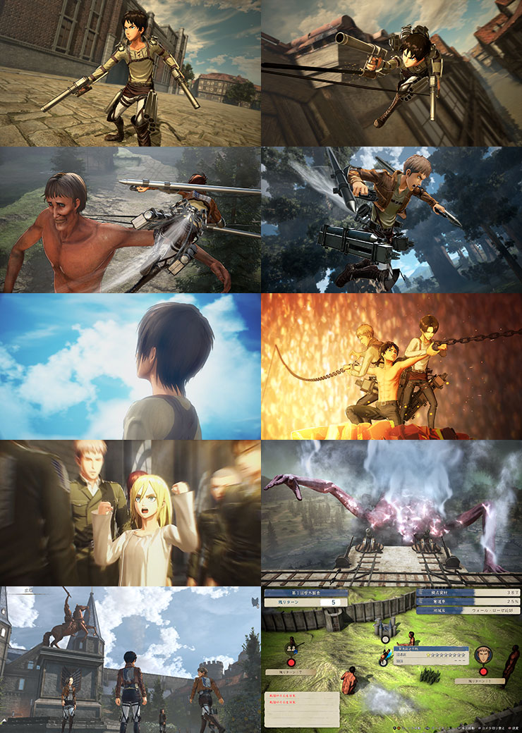 本作から新たに登場するキャラクターを含め、総勢40名以上のプレイアブルキャラクターが登場。さらに、従来のシリーズで好評を得た「立体機動装置」の空中高速アクションに新装備「雷槍」、「対人立体機動装置」を追加。