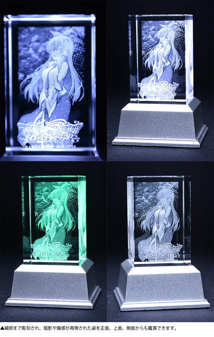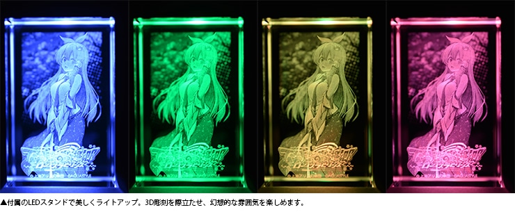 プレイヤーキャラクターの“東風谷早苗”のイラストをクリスタルキューブ内に3D立体レーザー彫刻された商品。