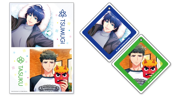 【204号室セット 月岡 紬&高遠 丞】の描き下ろしイラストを使用したアクリルキーホルダー2種。