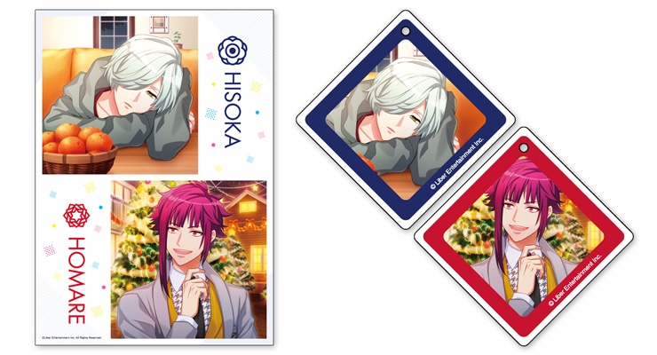 【205号室セット 御影 密&有栖川誉】の描き下ろしイラストを使用したアクリルキーホルダー2種。