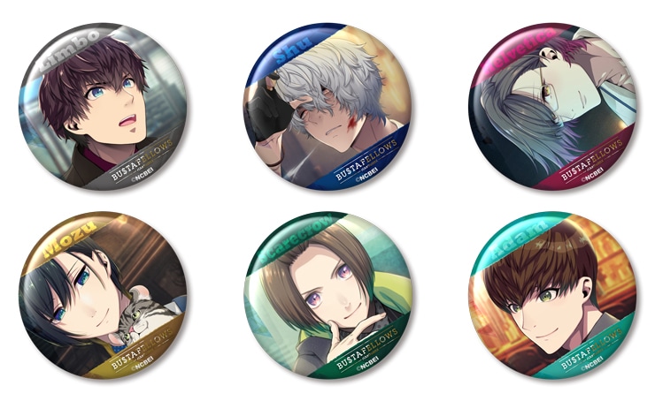 「リンボ」「シュウ」「ヘルベチカ」「モズ」「スケアクロウ」「アダム」のゲーム内イラストを使用した缶バッジ6種セット。