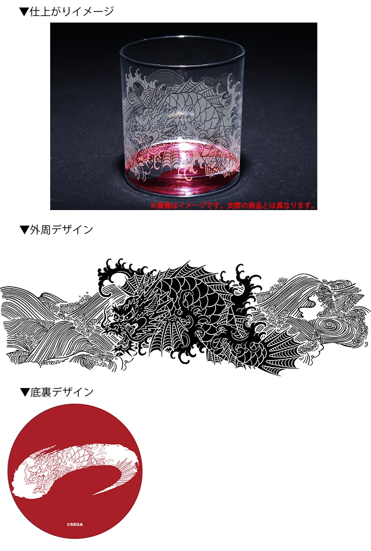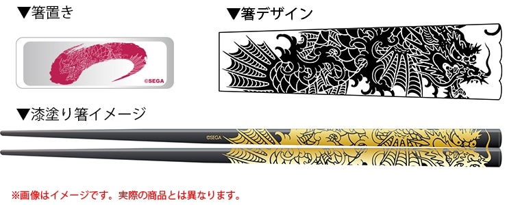 本作の主人公“春日一番”に焦点を当てた食器セットです。背中に彫られた龍魚や意匠をモチーフにデザインを施したロックグラス、小皿、漆塗り箸、箸置きが各1点付属します。