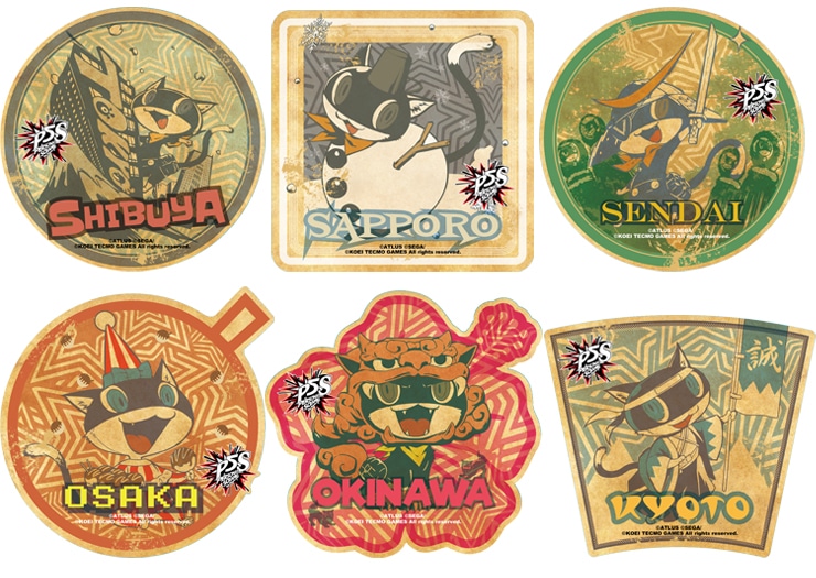 渋谷、札幌、仙台、大阪、沖縄、日本各地に怪盗団が赴く本作をイメージコンセプトに、怪盗団と一緒に旅をした気分になれる記念ステッカーです。スーツケースはもちろん、PCやステーショナリーなど様々なものに貼って楽しめます。