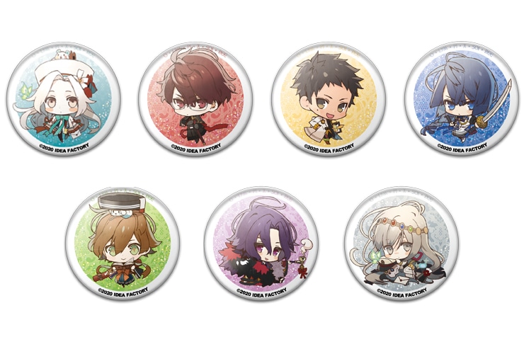 「オランピア」「朱砂」「玄葉」「璃空」「天草四郎時貞」「縁」「ヒムカ」のちびキャライラストを使用した缶バッジ7種セット。