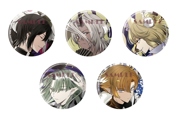 瀬見季継・悪虂王・白月・比良・湫のイラストを使用した缶バッジ5種セット。