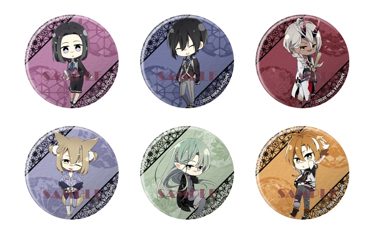 瀬見季継・悪虂王・白月・比良・湫・主人公のちびキャライラストを使用した缶バッジ6種セット。